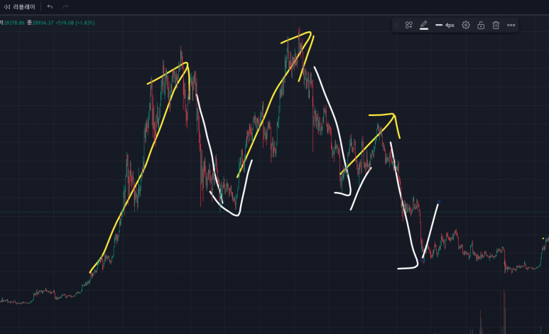 코인 차트의 경우, 오로지 100% 투자자들의 심리로만 그려지는