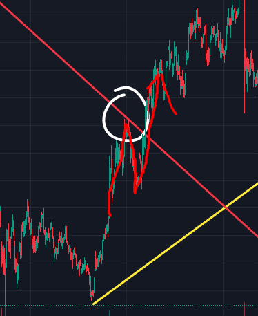 제가 임의로 하락 추세선(빨강)과 상승 추세선(노랑)을 그어본 것 입니다